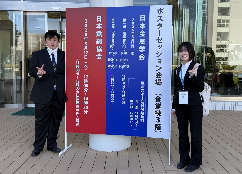 千葉工業大学で開催された日本金属学会春期講演大会で大学院生1名と学部4年次生1名が発表しました。(3月11-13日)