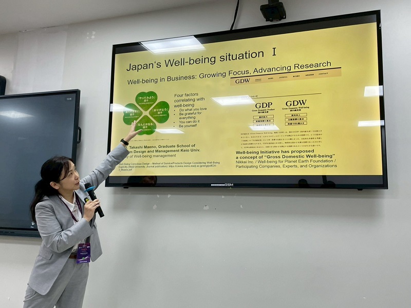今回のテーマは“Work & Well-being”であり、以前本プロジェクトに在籍していた袋本久美子さんとインターンシップ先である大阪商工会議所大阪サクヤヒメSDGs研究会との共同研究結果を発表しました。