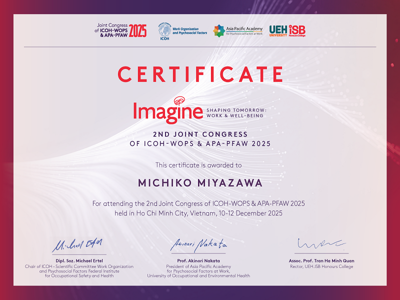 国際学会では日本の研究者の先生方の発表が素晴らしかったです。「過労死」はもはや国際用語で「KAROUSHI」とされています。プレゼンの仕方、データの見せ方、どういう英単語を使ったら伝わるか、たくさんの訛りがある英語の中での質疑応答の仕方などとても勉強になりました。
