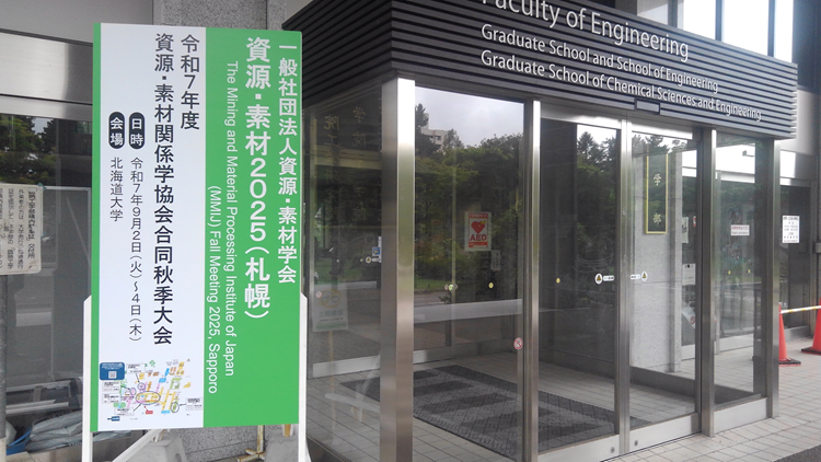 【N25-17】資源・素材2025(札幌)にて院生4人がポスター発表 2025年9月4日2025年9月4日 shigen 9月1日より、北海道大学・札幌キャンパスにて「資源・素材2025(札幌)」が始まりました。当研究室のM2石田君、權藤君、酒井君、長谷川君の4人が、ポスター発表を行いました。 北大工学部で開催されました