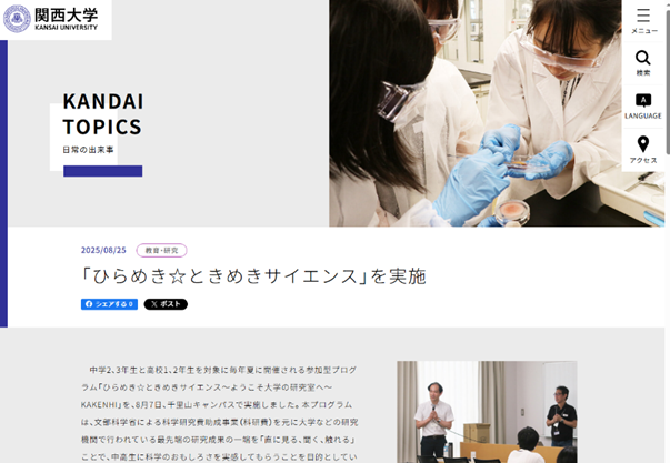 当該記事 - 【N24-14】ひらめき☆ときめきサイエンスの記事が大学HPに掲載